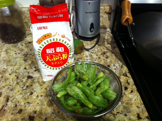 帰って、今度はひとり天ぷらディナー。昭和てんぶら粉もフツーに近くのスーパーで買えるのが嬉しい。