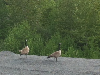 見に行くとサッカー場の脇の空き地で、7、8羽のカナダ・グースを発見。湖のほとりではよく見かけますが、うちの近所で見かけたのは初めて。たまたま羽を休めていたのでしょう。