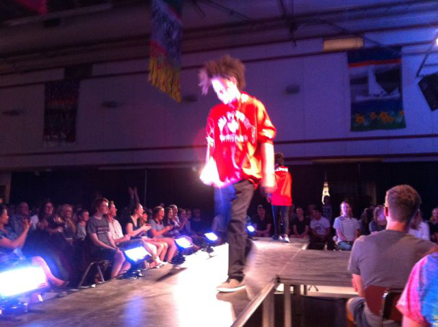 面白そうだし、高校は家から近いので行ってみることに。高校生はウィスラーのお店を回って、服を借りてきます。モデルも照明、音響もすべて卒業生たちが分担しています。