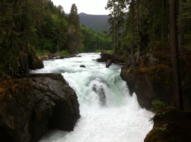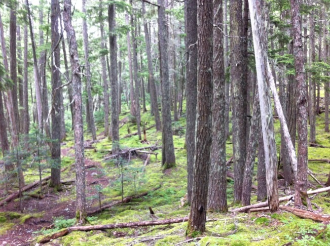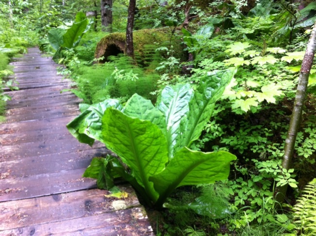 そのまま、土曜日も雨降りで、残念なお天気。でも、彼女はたった3日しかこちらに居ないので、雨なんて気にしていられません。そこで、この日はうちの近くのハイキングトレイルを案内しました。このあたりは、ある意味、雨の日のハイキングに向き。林の中を歩くコースが大半なので、木が雨を遮ってくれるのです。