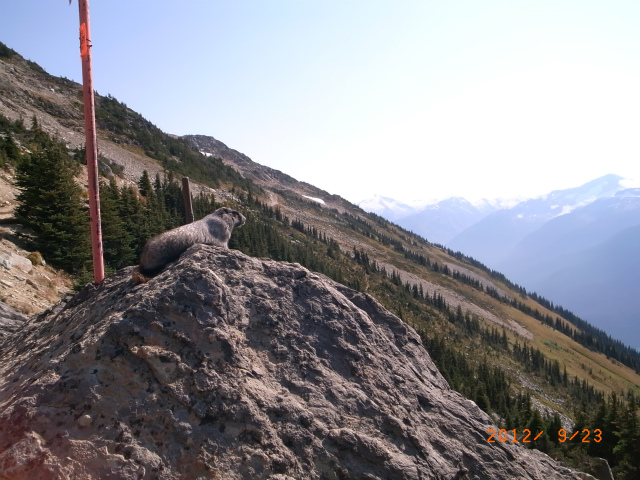 ウィスラーのハイキングでマーモットに出会いました。このマーモットは笛を吹くような声で鳴くので、"The whistler" というニックネームで呼ばれています。たくさんの "The whistler" が生息していることから、この山がウィスラーと呼ばれるようになったそうです。