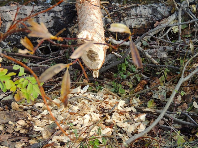 ビーバーは迷惑な住人。池の水の出口にダムを作って流れを堰き止めてしまうので、お母さんは毎日、カヌーで池に出てダムを取り除きます。ビーバーには会えませんでしたが、ビーバーが倒した木が存在感を示しています。