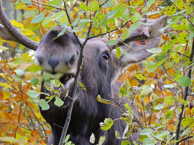 ムースはあまり目が良くないそうで、静かにしていると、逃げません。これは2歳前後のオスだそう。