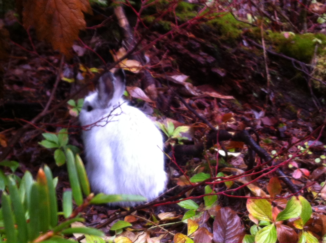 作業を終えて、あったかいハーブティーを飲みながらのおしゃべりの中で、ジェフが前日にウサギが庭にやってきたと話していました。山の上で雪の上にうさぎの足跡を見ることはあっても、ウィスラーでうさぎに遭遇したことはありませんでした。