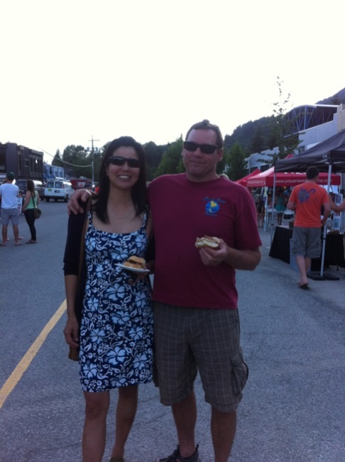 地元の協賛するお店がテントを立てて、ホットドッグやサンドイッチ、などを売っています。同じ通りにウィスラー・ブルーワリーの工場と併設するバーがあるので飲み物はそこで調達。ここでは多種の地ビールが楽しめます。