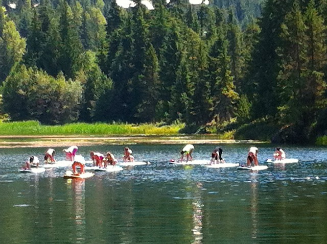 あちこちで、ヨガのクラスが開催されます。これはアルファレイクで行われていた、パドルボードのうえでするヨガのクラス。かなりのバランス感覚が必要そうです。
