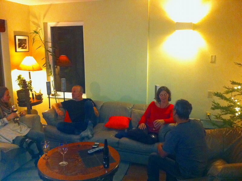 クリスマスイブの夜は、マノン&パトリシオの家でクリスマスパーティをすることに。ポットラックパーティで、私は野菜料理を担当することに。そこでキャロットスープとケイルサラダを持って行きました。メインは料理が得意なヒロミが子羊のローストを作ってくれました。この日は、20人足らず集まりましたが、大きなローストはあまるほどでした。