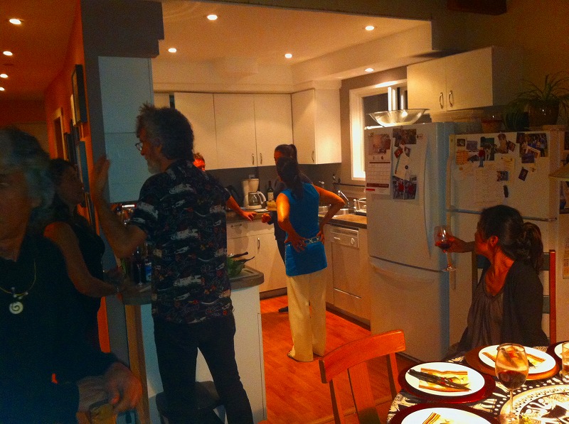 キッチンで持ち寄った料理を温めたりしながらも、おしゃべりに花を咲かせます。