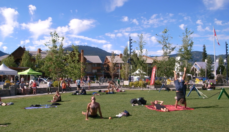 こちらでは、ふだんからヨガがとてもさかんです。ウィスラーにもたくさんのヨガ教室があります。lululemon という、バンクーバーからスタートしたヨガウェアの専門店はとても人気があって、ひとつのファッションになっているほどです。