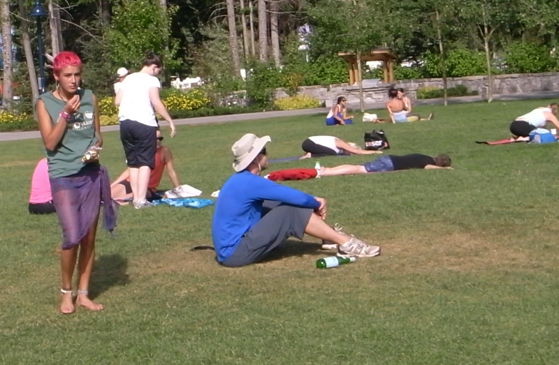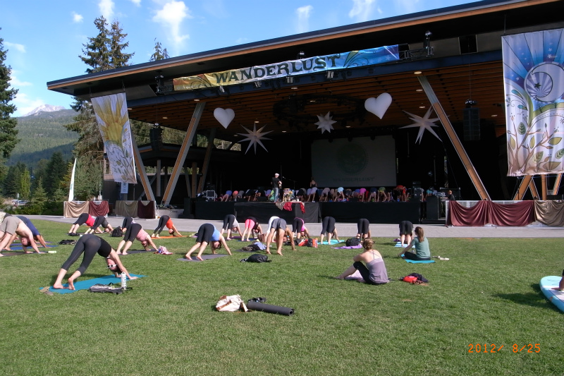 木曜日にトレイシーたちが昼間ヴィレッジを歩いたら、ヨガマットを持った人でいっぱいだったと話していました。ちょうど、ヨガのイベントが始まったところだったようです。8月23日から8月26日の4日間、Wonderlust と呼ばれるイベントが開催されていました。たくさんの有名!?なヨガの先生が来ていて、ヴィレッジのあちこちでいろんなヨガクラスが開催されていたようです。このイベント目当てに北米のあちこちからヨガ好きが集まっていました。