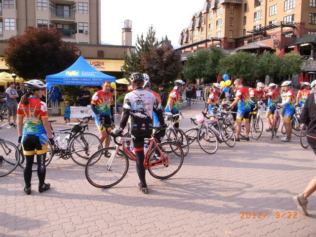 サイクリストの中に、ウィスラー在住の1本足のフィルの姿もありました。パラリンピックにアルペンスキーで3回出場。マウンテンバイクもプロ級。18年間、障害者のスキーチームのコーチをされているそうです。足が一本しかないのに、健常者のサイクリストに負けないスピードでバイクを乗り回し、数々のレースにも出場しているすごい人です。