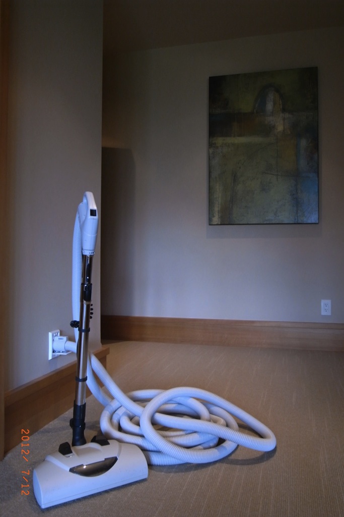 壁の穴にホースを繋げる造り付けの掃除機。いちいち掃除機を引っ張って歩かなくてよい憧れの掃除機でした。しかーし、実際に使ってみると日本のコンパクトな掃除機が恋しくなります。8メートルはあろうかと思われるホースは重いし絡まるし、持って部屋を移動したり階段を昇り降りするのもけっこう大変でした。