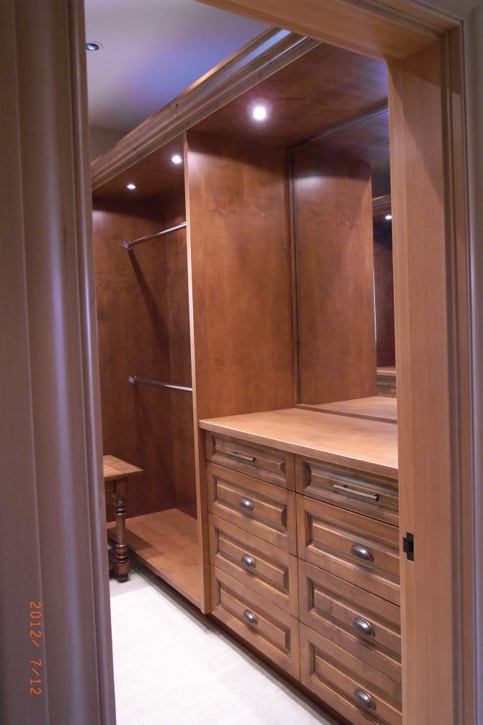 マスターベッドルーム(主寝室)のウォークインクローゼット。たぶん6帖分くらいの広さだと思います。