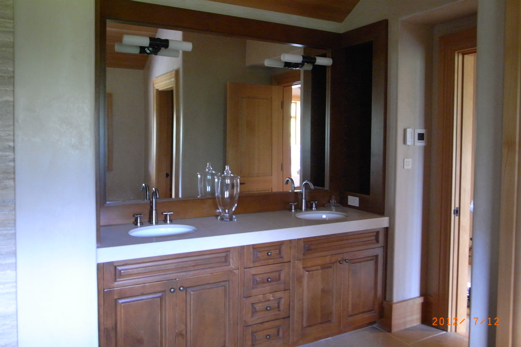 こちらでは、ゴージャスなお家のバスルームにはカップルが同時に顔を洗ったり、歯を磨いたりできるように二つの洗面台を付けます。