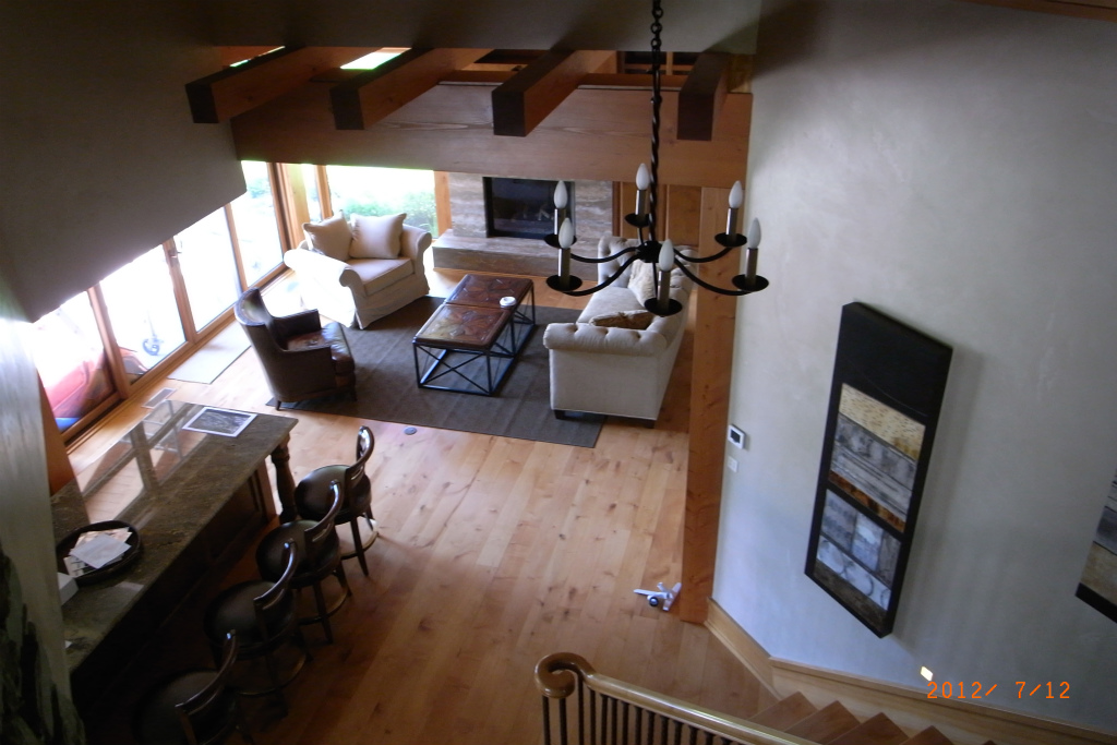 陸が知り合いの建築家から頼まれて本業の合間に修理に行っている7億円の豪邸の掃除を手伝いました。6つのバスルーム付きの寝室、地下にはバスルームとワインセラーとバーキッチンの付いたシアタールーム。二つのリビングスペースと大きなキッチン。そして庭の向こうにはバスルーム付きのゲストハウスがあります。これは建ててから売りに出しているスペックホームで、まだ誰も住んでいません。