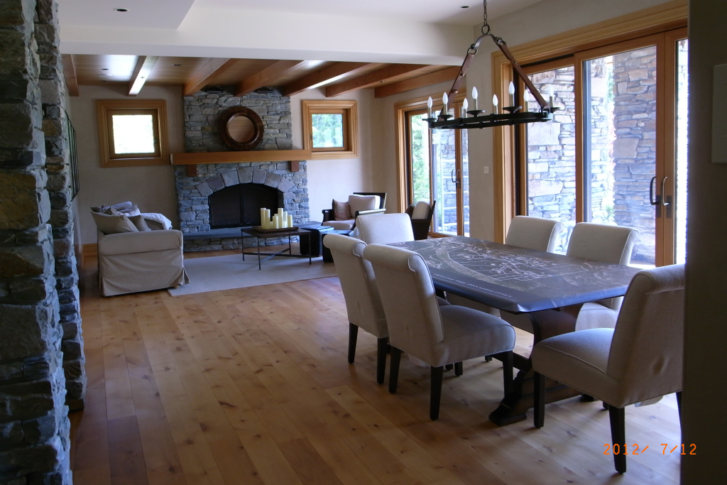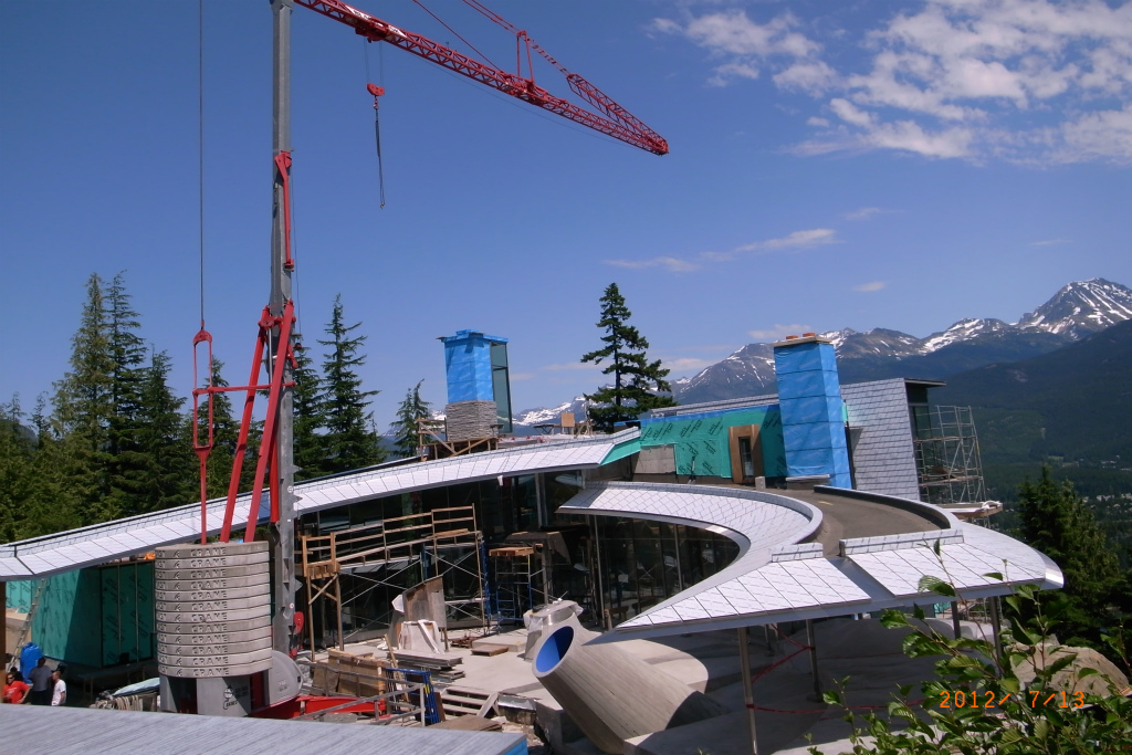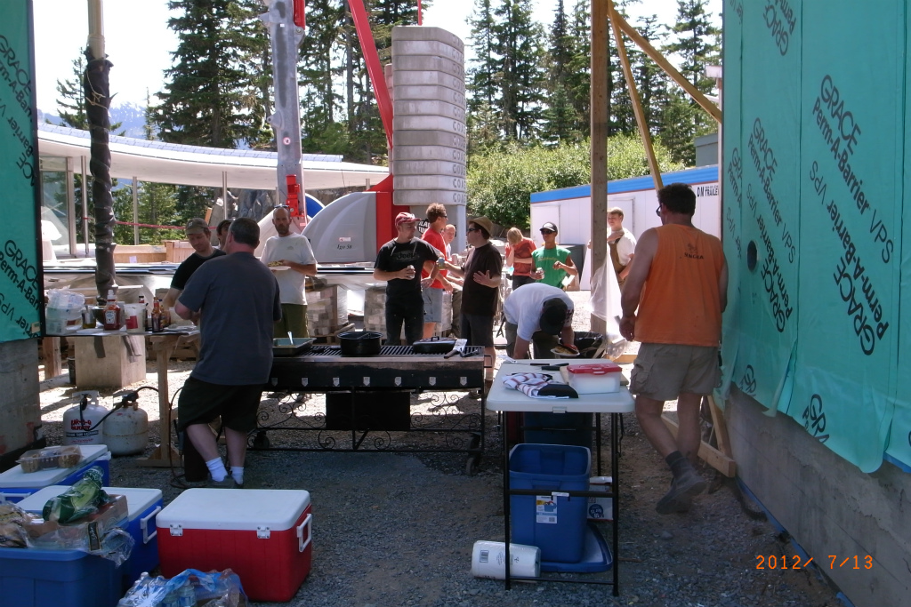 金曜日の午後、陸の仕事場でバーベーキューが振る舞われました。今からバーベーキューだから来いと迎えに来てくれたので行ってみました。この家は、予算30億とも50億とも言われる豪邸で、20人以上の人が働いています。これまでウィスラーの家といえば木の温もりを感じられるというのが定番でしたが、最近はコンクリートとガラスと金属の家が増えて来ています。木や石も多少使われてはいますが、外壁はZinc(亜鉛)、柱やひさしはステンレスだそうです。
