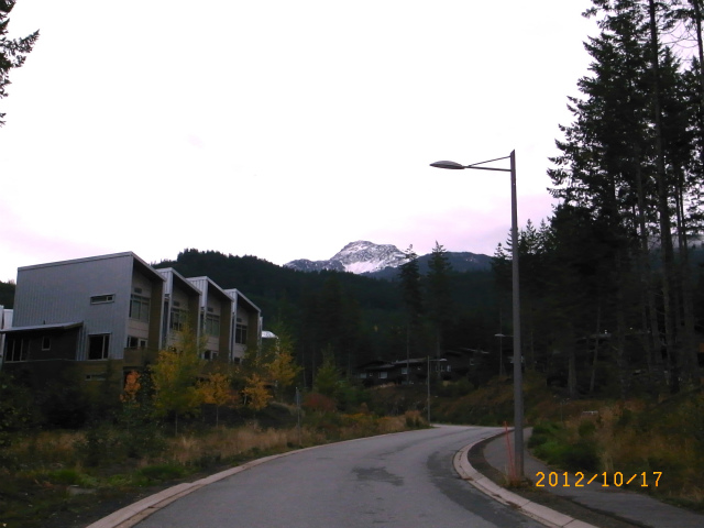 たれ込めていた雲が晴れると、ウィスラー・マウンテンの頂上には雪が積もっていました。