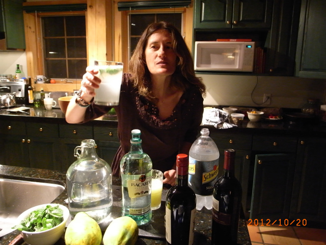 さっそく、マーティのガールフレンド リンが、飲み物を作ってくれました。この日のテーマはケイジャンだから、飲み物はモヒートを用意しているとのこと。モヒートって!?と聞くと、キューバのラムベースのカクテルでヘミングウェイが愛飲したとか。ラムにたっぷりのミントの葉とライム、砂糖水を加えてソーダで割ります。爽やかでほんのり甘いカクテルです。