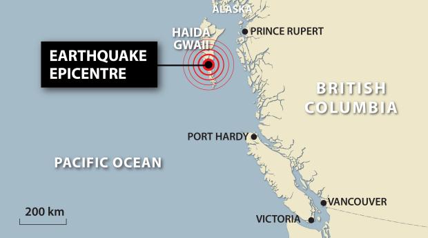 土曜日の夜、BC州の Haida Gwaii という島で、マグニチュード7.7 の地震がありました。さいわい大きな被害はなかったようです。