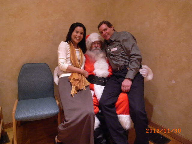 子どもたちが、サンタのまわりから居なくなったところで、私たちも記念撮影。