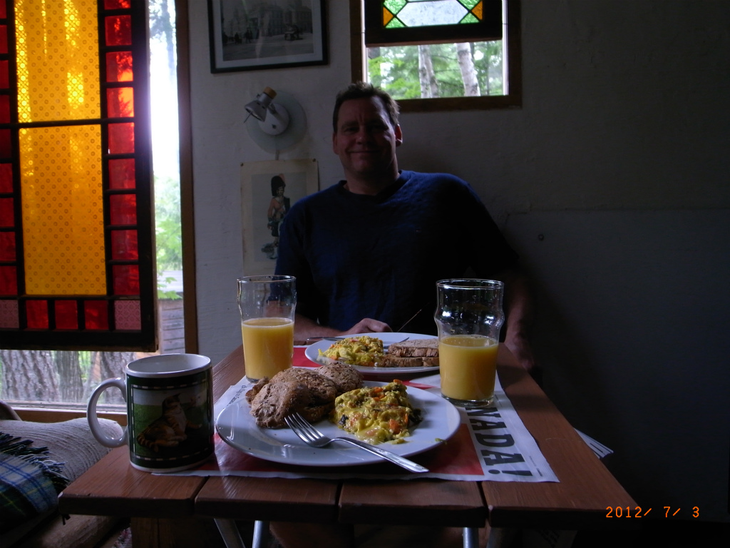 カナダ・デーの翌日は休日、日本のHappy Monday と同じしくみです。天気も良くなって、窓から光の差し込む気持ちのいい朝でした。朝食は野菜とチーズたっぷりのスクランブルエッグにしました。ゆっくり朝食を楽しんでから、キャビンを掃除してウィスラーに向かいました。