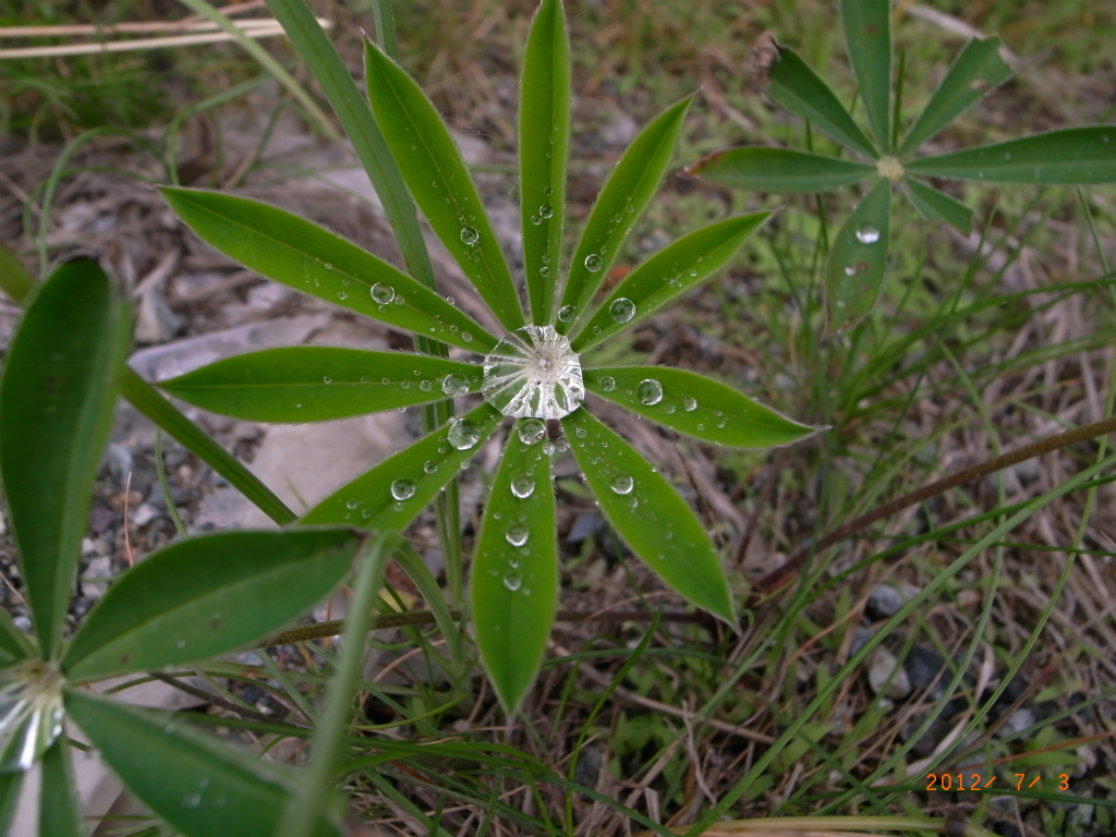 帰り道の道路脇で葉っぱに溜まった露がキラキラしてきれいでした。