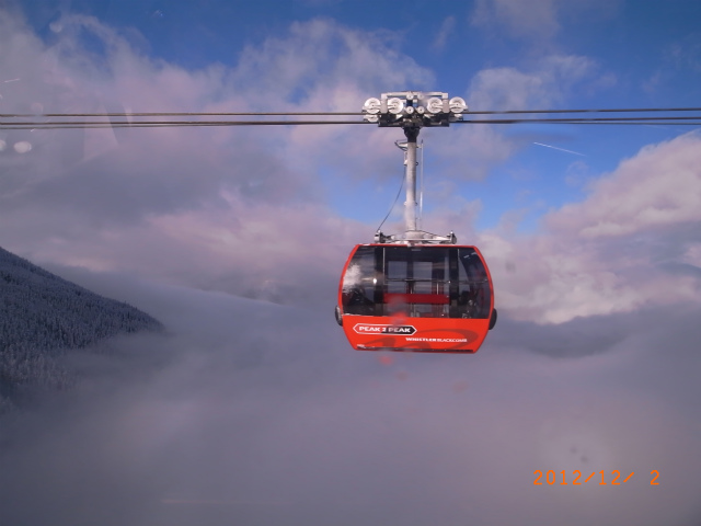 この日はブラッコム・マウンテンで集合ということになり、クリークサイドから山に上がる私たちは、ゴンドラ、リフト、そして Peak to Peak と呼ばれる、ウィスラーとブラッコムをつなぐ、大型のゴンドラを乗り継いで、ブラッコムへ。