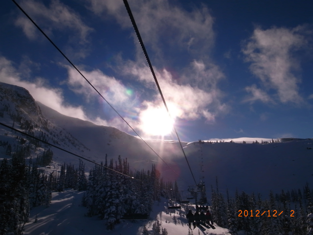 日曜日の朝、朝食をとっていると、Hiromi から電話。すでにリフトに乗っているとのこと。雪の降った日の翌朝は、人に踏まれる前の新雪を滑るために8時半にスタートするゴンドラに並んで、できるだけ早く山に上がろうとする人たちがたくさんいます。前夜、真夜中過ぎにベッドに潜り込んだのは同じの筈なのに、Hiromi は早起き。実は前週にアフリカ旅行から帰ってきたばかりで、まだ時差ぼけが治らず、早朝に目覚めてしまうのだそう。