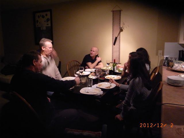 少し早めに山を下りた Hiromi は、チキンタイカレーと、アフリカで教わったレシピでバナナの煮込みを作ってくれていました。Manon はサラダを持ってきて、みんなで夕食を楽しみました。続いてデザート。合作のアップルクリスプも好評でした。おっと時間がない、デザートを終えるとすぐシアターへ。なんともハードスケジュールな日です。。。