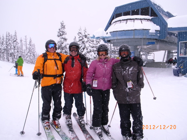 妹一家、ローラ&ピート、息子のコナー、娘のサマンサがカルガリーからやってきました。彼らが到着した19日は、大雪でバンクーバーの交通がマヒ状態。バンクーバーから抜け出すだけに2時間以上かかったそう。ハイウェイも雪のためあまり高速では走れず、7時前にやっとウィスラーに到着したとメッセージが届きました。