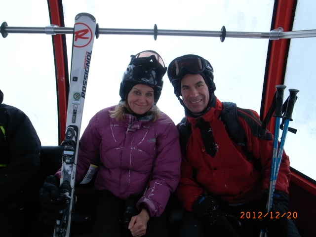 次の朝8時15分にゴンドラ前で落ち合って、みんなでスキーの予定でしたが、娘のサマンサが風邪でダウン。彼女をホテルの部屋に残し、5人で出かけました。