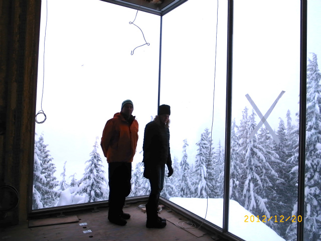 そのあと、そのまま陸の仕事場の30億円の豪邸を見に行くことに。この豪邸はスキー場とは反対側の山の中腹にあり、途中、急な坂道があります。この日の雪は普段になく深く心配していたら案の定、4駆でない陸の車はお尻をふりはじめました。一番後ろに移動しろ!と言われ、いそいで工具箱やスキー板が散乱する後部へ移動し、重心を後ろに。なんとか坂道をクリアして現場に到着しました。まったく。。。