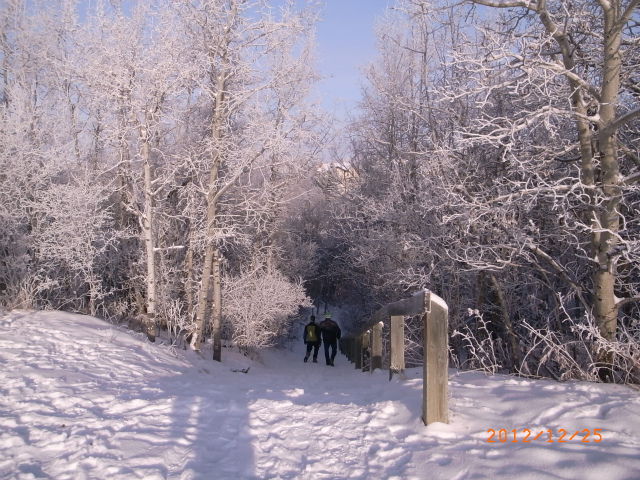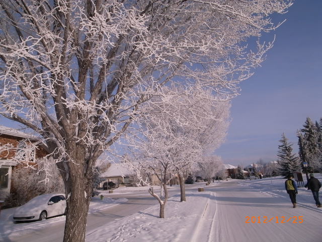 クリスマス当日は朝からいい天気。料理の支度はお母さんとローラに任せて、私はマイナス20度の世界を体感するためにピートと陸とともに散歩に出かけました。