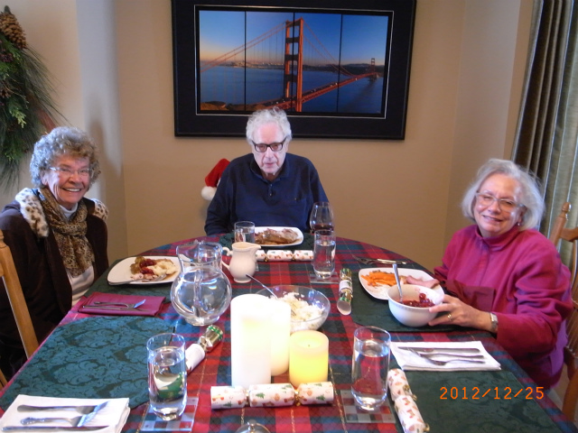 プレゼント交換のあとは、みんなでピーカンパイを食べながらおしゃべり。ほどなくおばさん夫婦、続いてお母さんも帰途につきました。