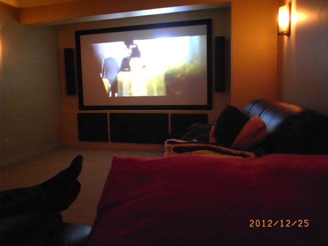 大きなスクリーンと音響システム、革張りのリクライニングチェアを装備したシアタールームは快適。こうしてクリスマスの夜は更けてゆきました。