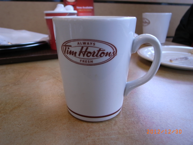 8時過ぎに目を覚まし、支度をしてチェックアウトをすませてから、Tim Hortons へ。クリスマスのプレゼント交換で貰った、ギフトカードが役立ちます。
