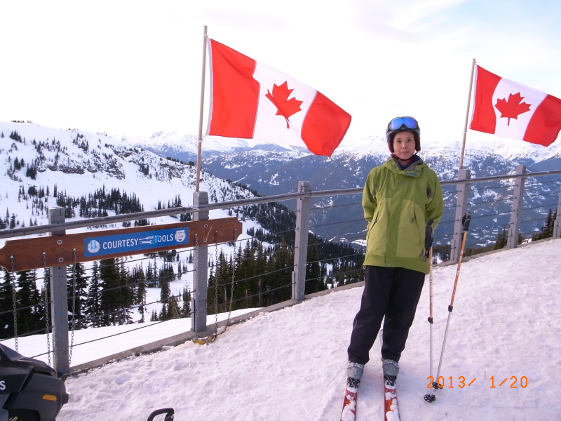 ヘルメットをかぶるとどうにも頭でっかちで不格好です。。。 日本ではどうなのかわかりませんが、こちらでは、スキー、スノーボードをするときのヘルメット着用が推奨されていて、半数以上の人がヘルメットをかぶっています。危ない事しないからいらないと思っていましたが、みなスピードを出すのでぶつかってけがする人がたくさんいるとのことで、私もヘルメットをかぶる事に。
