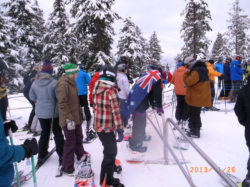 リフト待ちの列に、オーストラリアの旗を着た?人を数名発見。すると陸が、今日はオーストラリア・デイだと言います。オーストラリアの建国記念日のようです。