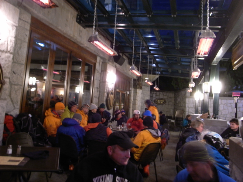バーのパティオはスキー後のアプレを楽しむ人たちで満員。