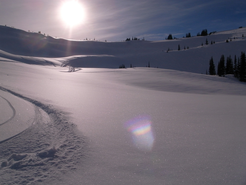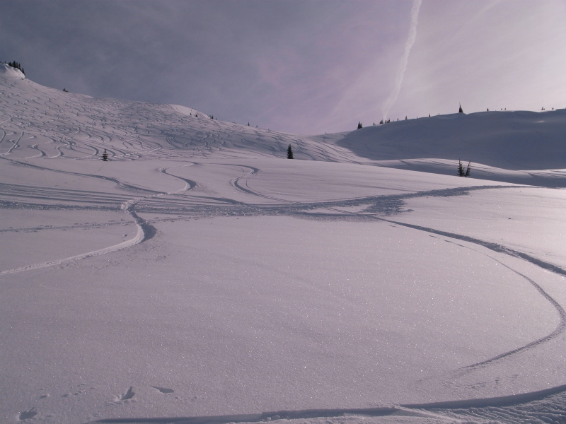 スキー場から一番近いエリアはたくさんの人が滑ったあとがありますが、それでもふかふかの雪を堪能できました。