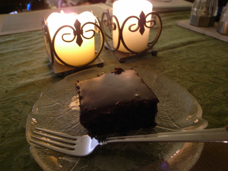夕食後のデザートに。全粒粉の小麦粉を使ったため、スポンジがちょっとざらついたかんじ。ファンシーなデザートというよりは、ヘルシーなおやつ的味わい。かなり大きなケーキでしたが、日持ちするので、陸のランチやスキーに出かけるときのおやつに持って行くのに役立ちました。