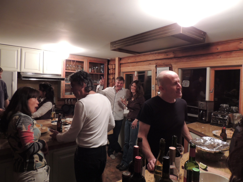 7時半ごろになって少しずつ人が集まってきました。ところが、マノーとパトリシオの車が凍てついたジェフのドライブウェイでスタック。男性陣は救出のため外に出て行き、20分あまりしてから戻ってきました。