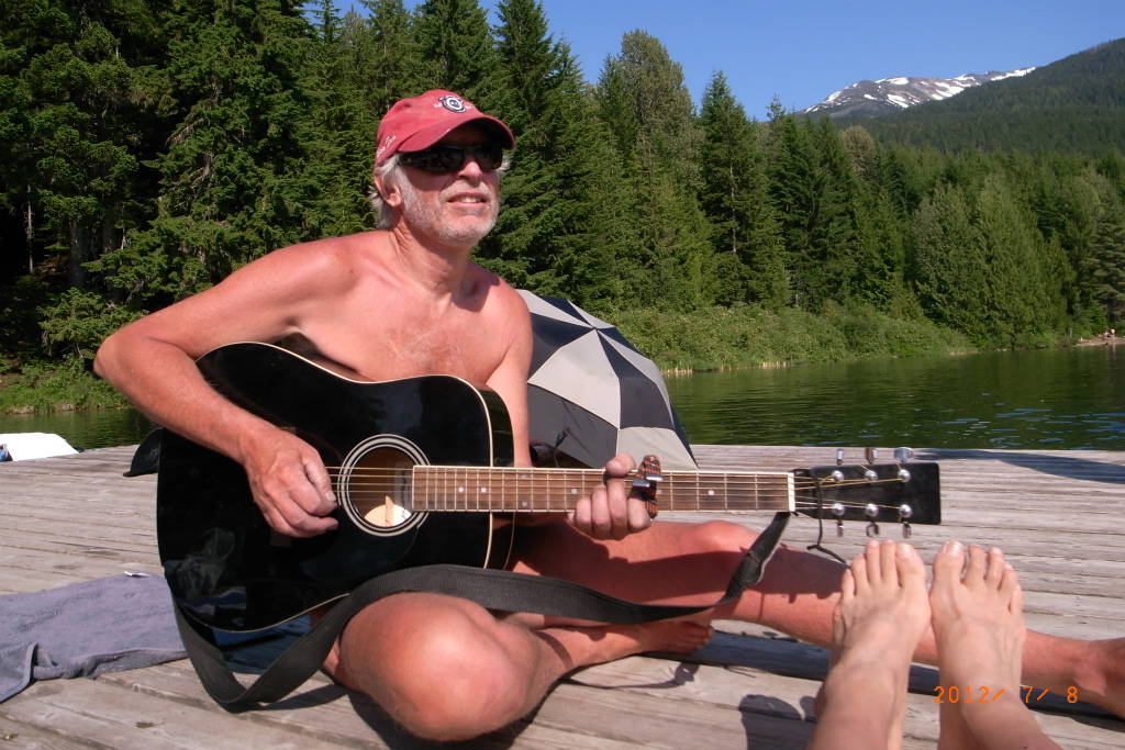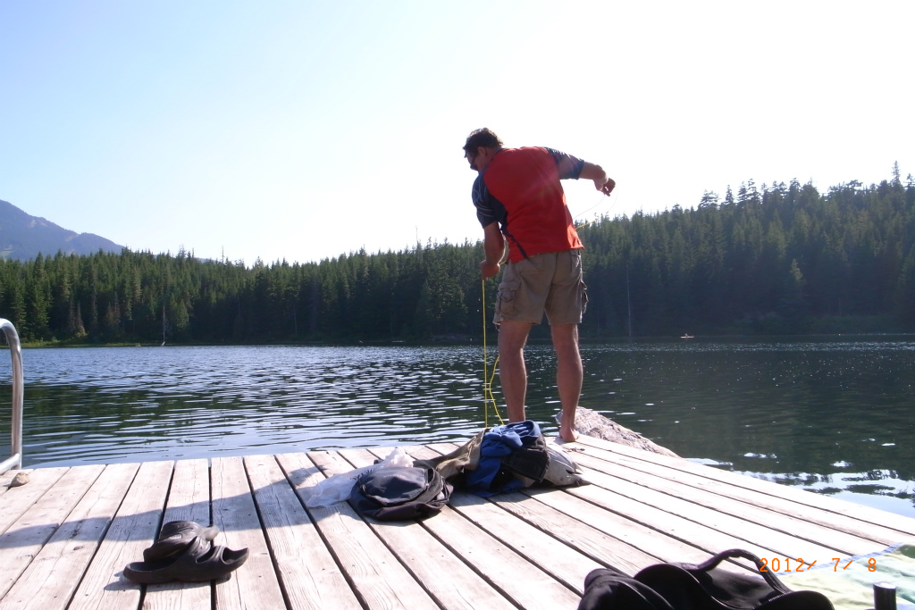 この湖には、ウィスラー唯一のヌーディストビーチならぬ、ヌーディストドックがあります。ここが陸のお気に入りの場所。ここに行くと、いいおじさんたちがみんなぶらんぶらんさせながら泳いだり歌ったり日光浴したりしています。女性もトップレスの人、素っ裸の人、水着を来ている人と様々です。