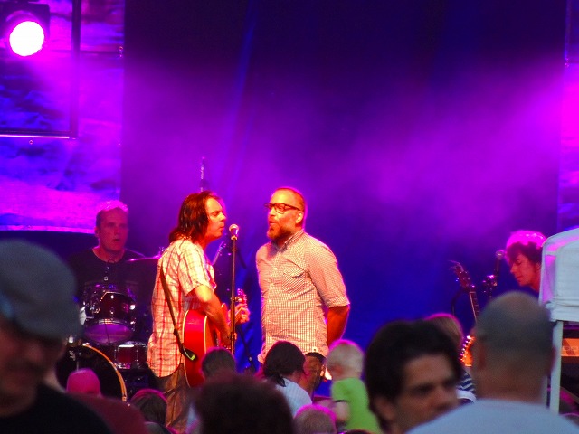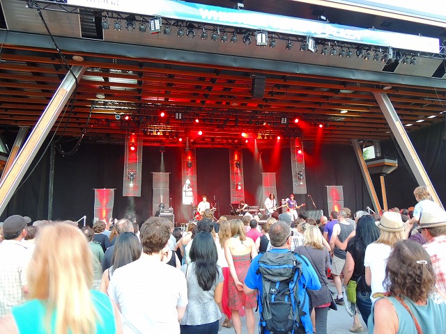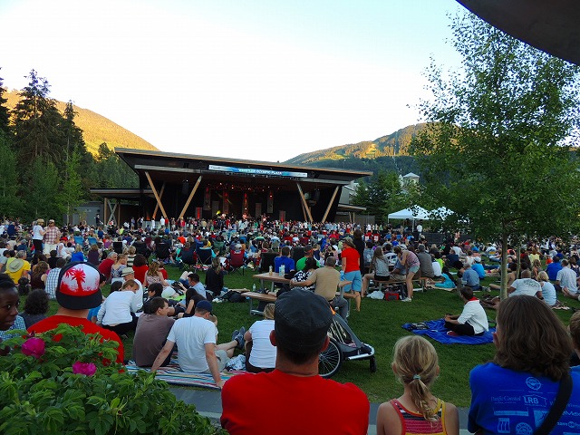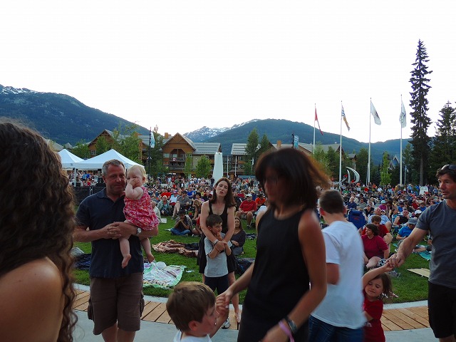 今年も恒例のウィスラー・オリンピック・プラザでの無料野外コンサートシリーズがスタートしました。この日は54-40(フィフティフォー・フォーティ)というカナダでは有名なロックバンドということで出かけました。すでに50台と思われるメンバー、今まで聞いたことのなかった私にとっては、ふーんというかんじですがこちらの私たち世代は青春時代に聞いた思い出の曲も多いのでしょう。