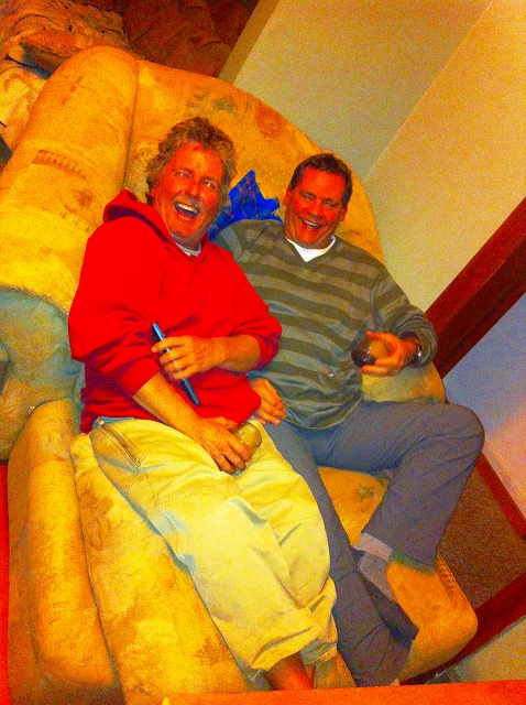 YouTubeで、交互に気に入りの音楽を選んでは、コンピュータに繋いだ大型スピーカーから大音量で再生。二人仲良く大型のカウチに収まってシアワセそう。この写真に「陸がゲイだったことを始めて知りました」というメッセージを添えて陸の妹ローラに送っておきました(笑)