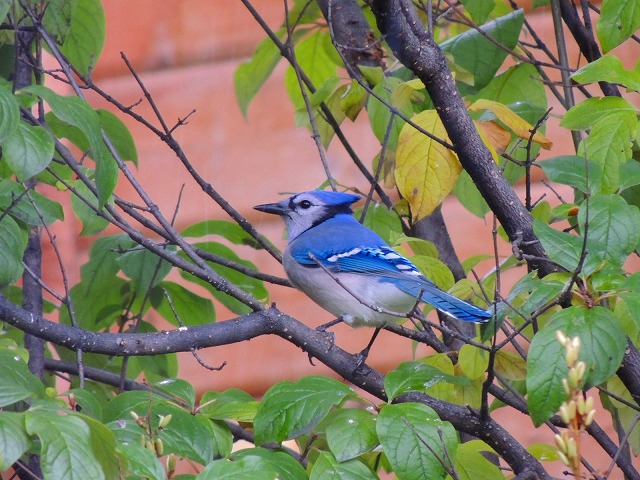 家の横にバードフィーダーを置いて、様々な鳥がやってくるのを見るのもお母さんの楽しみの一つ。鮮やかな青い鳥の写真が撮れました。