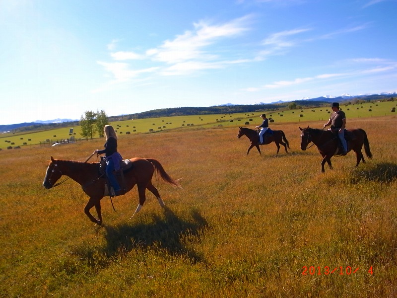 馬を預けている牧場のなかでしたが、急な上り坂があったり、小さな小川を渡ったりと初心者にはけっこうドキドキの楽しい乗馬でした。