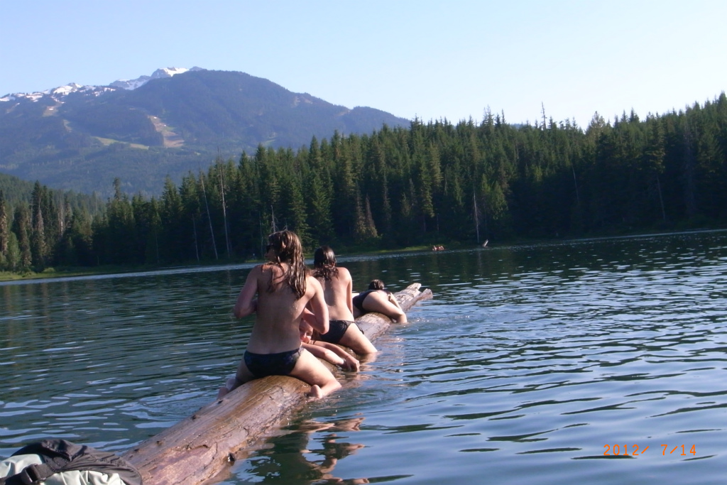 十代と思われる女の子たちが、キャーキャーと騒ぎながら丸太を揺らして落とし合い、とても楽しそうでした。