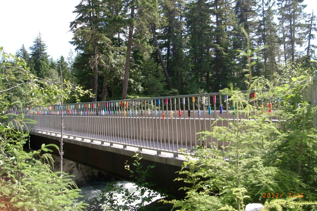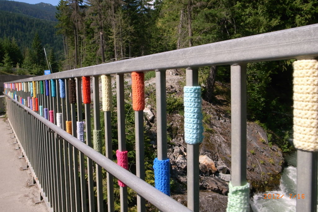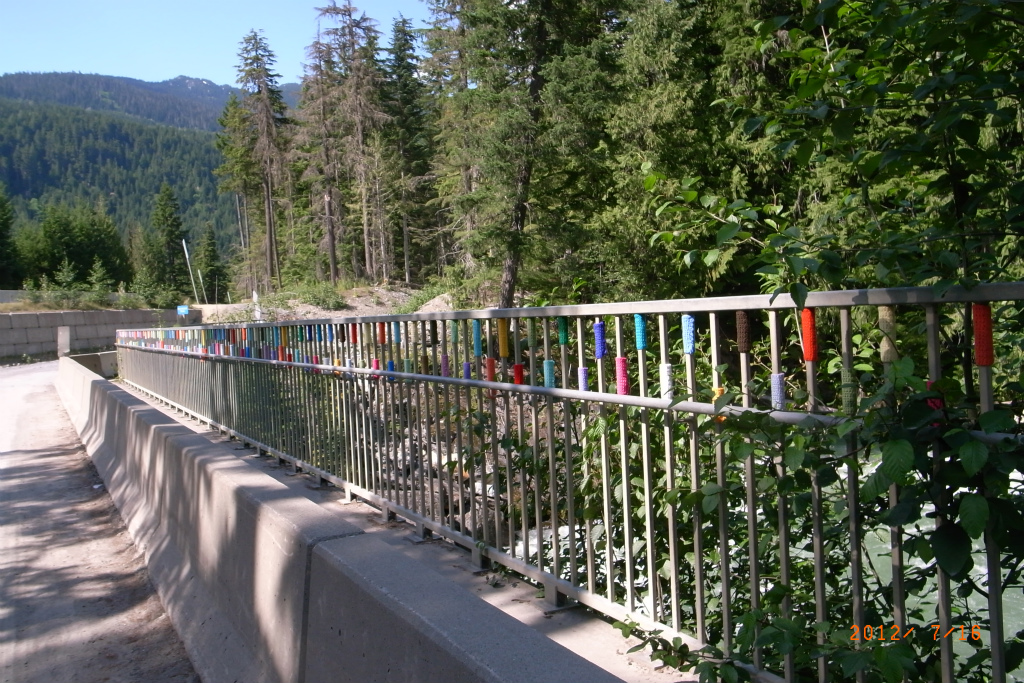 散歩コースにある橋の欄干がなんとも不思議なことになっています。カラフルに装飾されているのです。