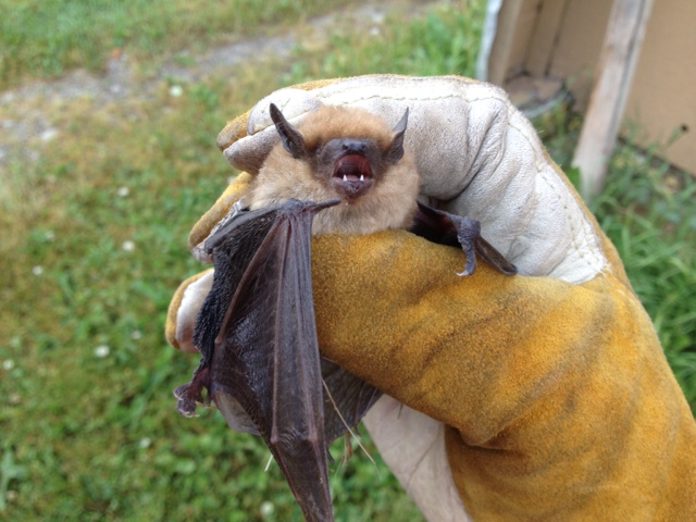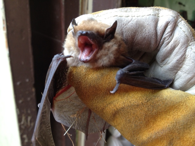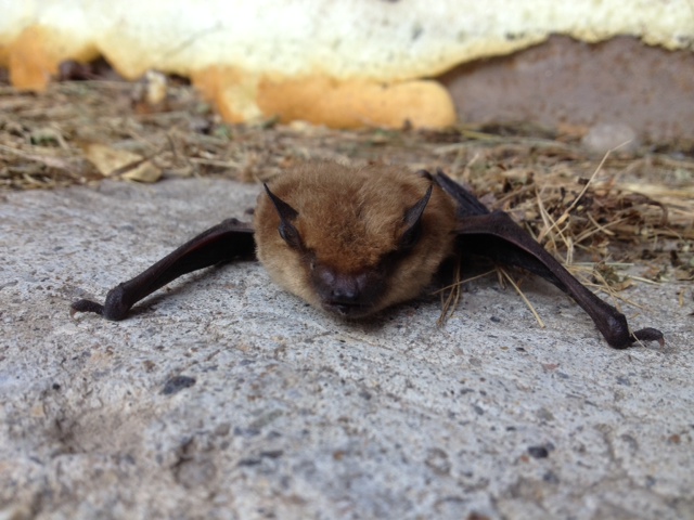 突然、陸に安眠を阻害された、気の毒なコウモリくん。かなりご機嫌ナナメのご様子(笑)